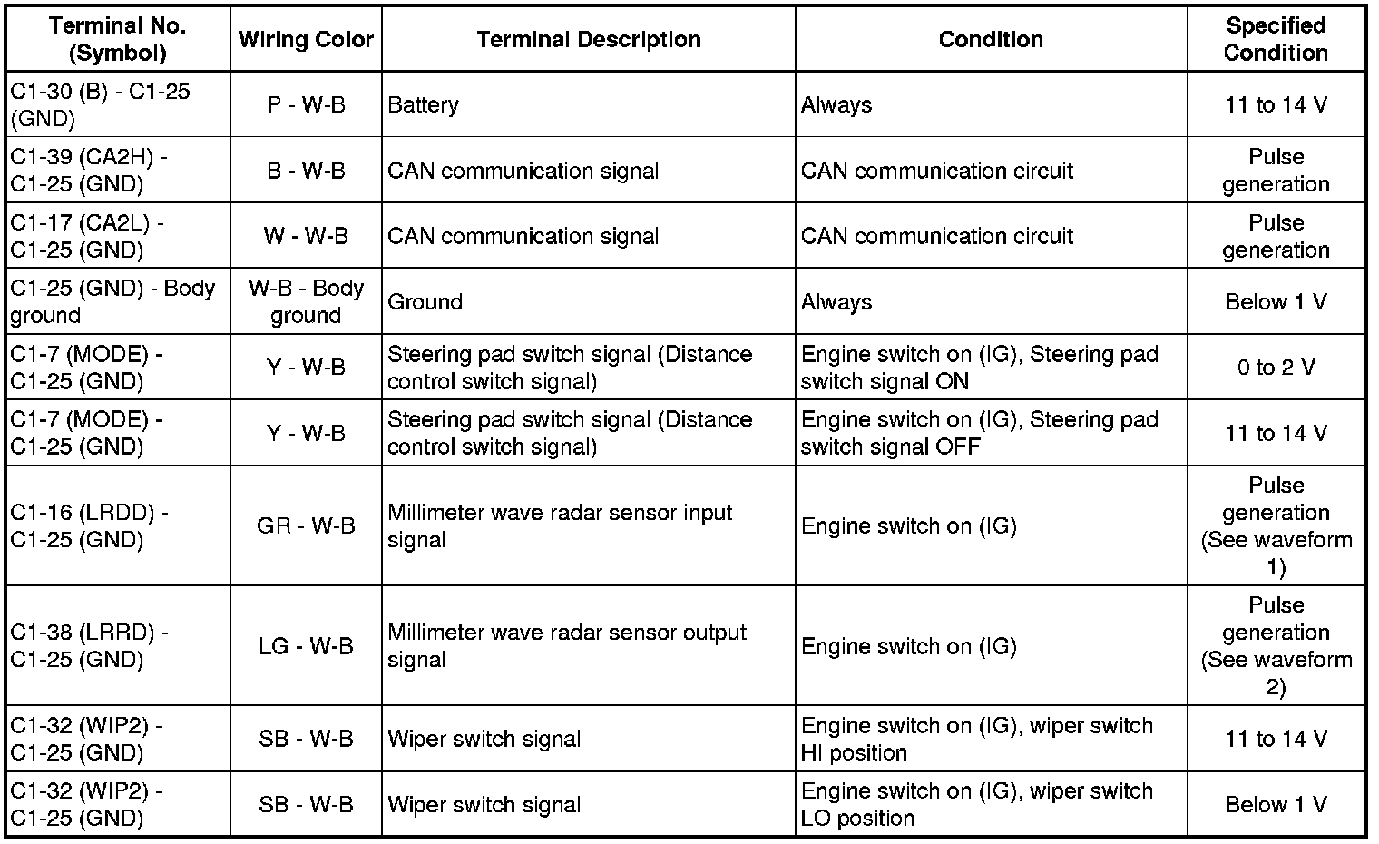 * Terminal: C1-38 (LRRD) - C1-25 (GND)