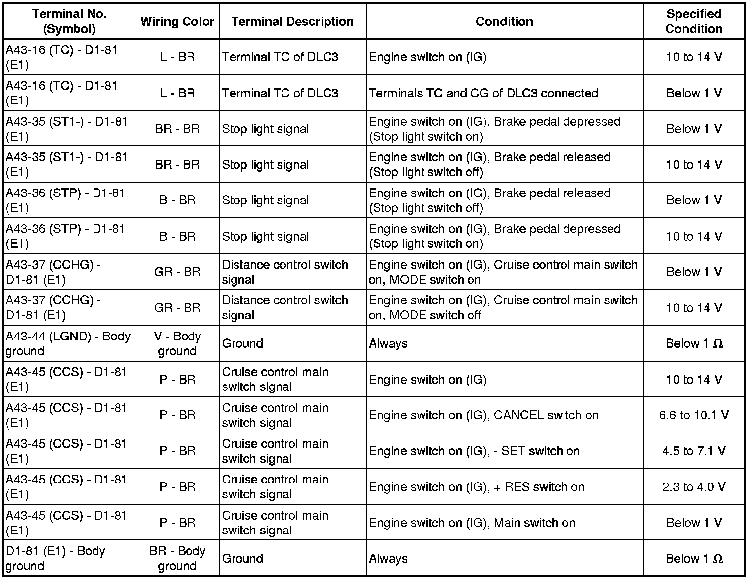 CRUISE CONTROL: DYNAMIC RADAR CRUISE CONTROL SYSTEM: TERMINALS OF ECU