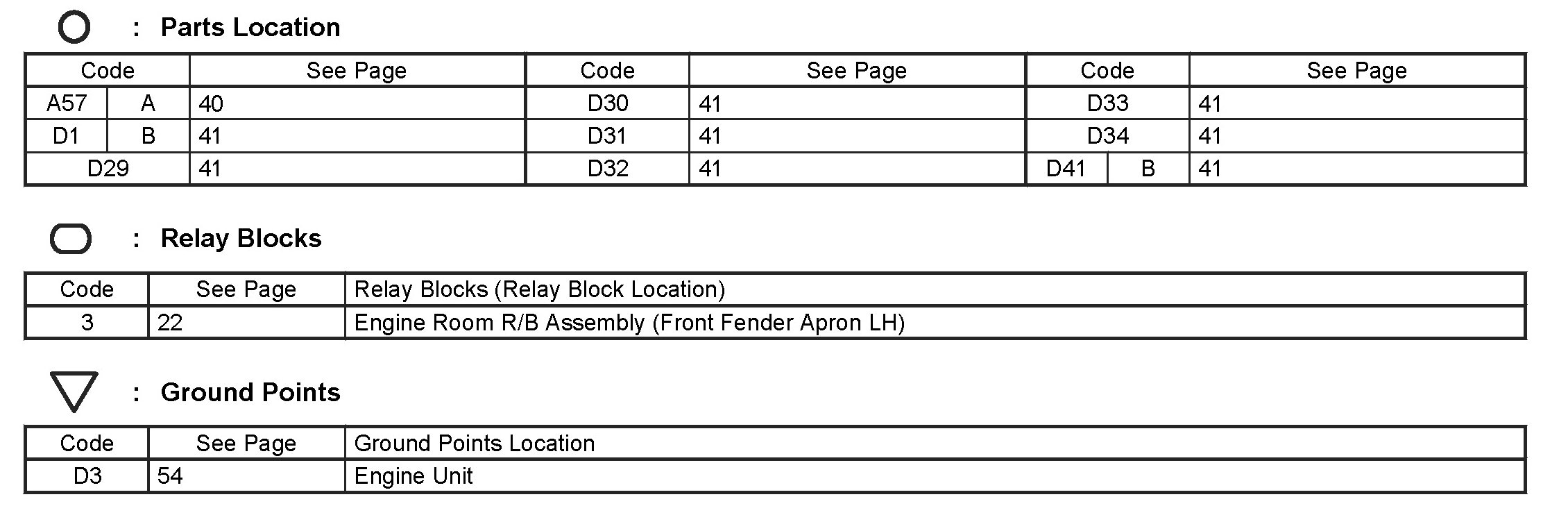 Locations: The locations of components, connectors, ground points, and splices referred to within these diagrams can be found at Vehicle Locations. Locations