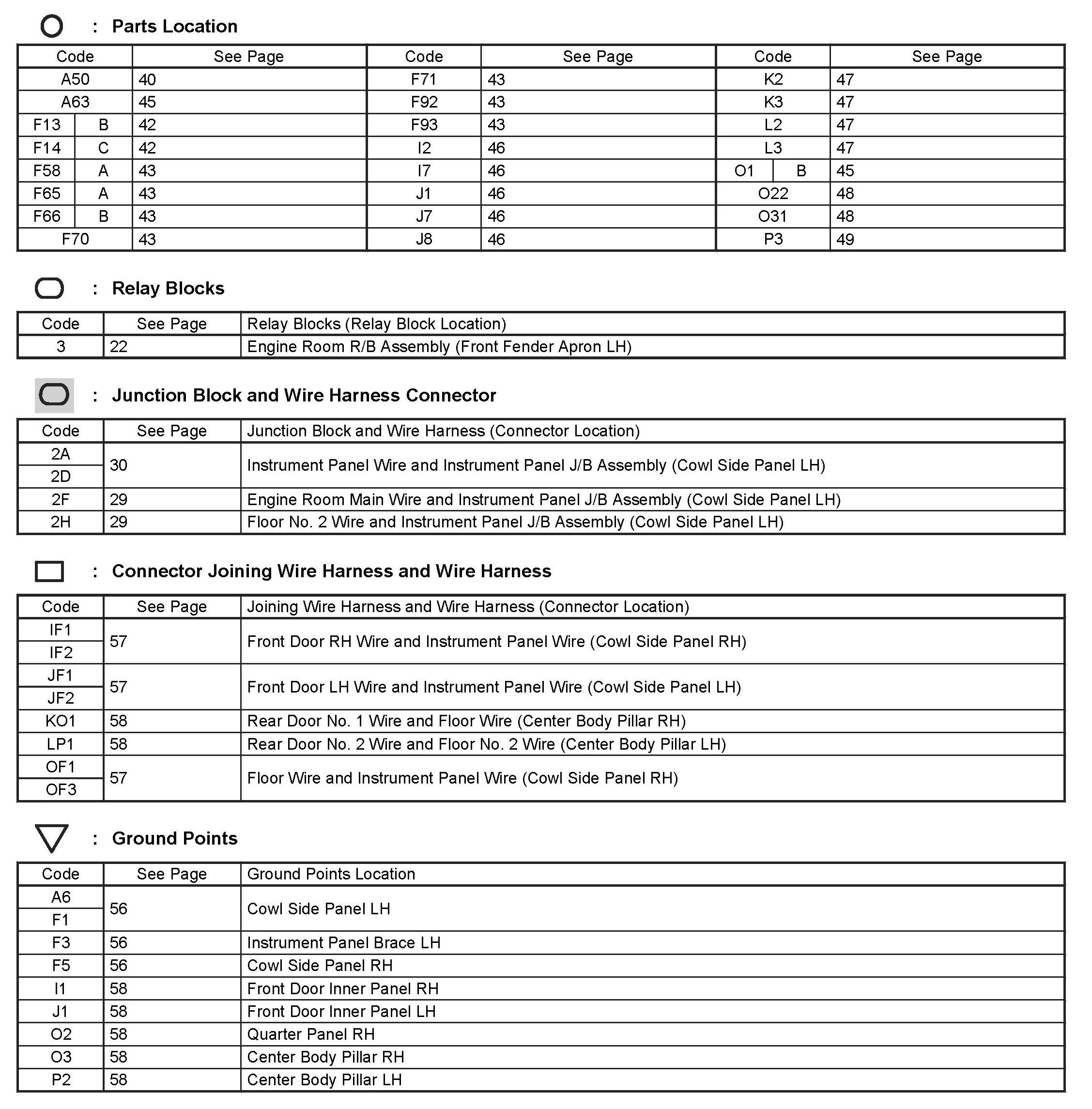 Locations: The locations of components, connectors, ground points, and splices referred to within these diagrams can be found at Vehicle Locations. Locations