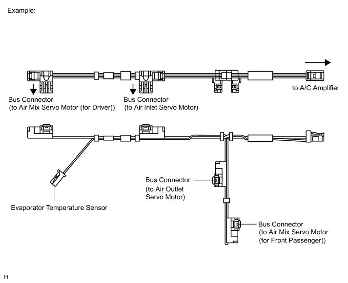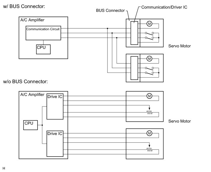 (a) A BUS connector is used in the wire harness connection that connects the servo motor from the A/C amplifier.