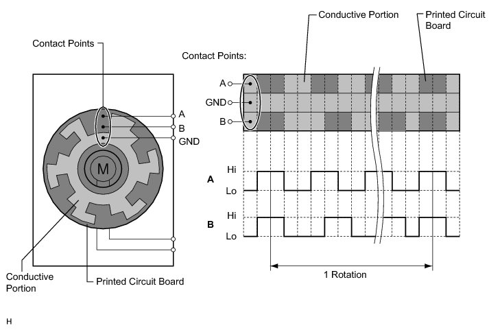The pulse pattern type servo motor consists of a printed circuit board and a servo motor. The printed circuit board has three contact points, and can transmit two ON-OFF signals to the A/C amplifier based on the difference of the pulse phases. The BUS connector can detect the damper position and movement direction with these signals.