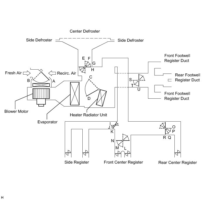 (1) The A/C amplifier detects harmful elements (CO, HC, and NOx) based on a smog ventilation sensor signal and automatically switches the air inlet mode to the recirculate air mode to prevent such harmful elements from entering the cabin.