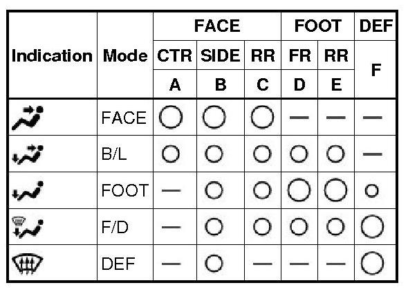 (3) The A/C amplifier detects the outside temperature based on an ambient temperature sensor signal and automatically switches the air inlet mode to the fresh air mode to prevent the windshield from fogging up.