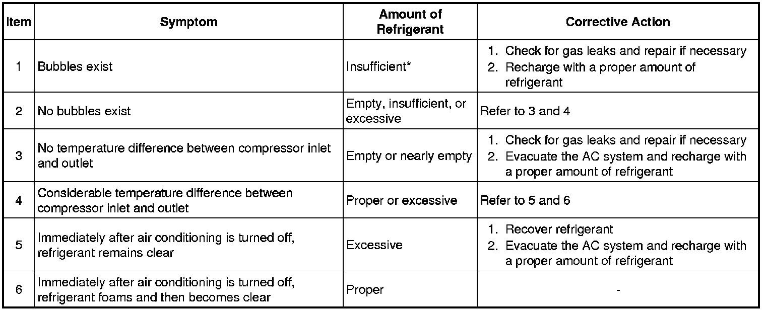 *: Bubbles in the sight glass with the vehicle's interior temperature above 35°C (95°F) can be considered normal if cooling is sufficient.