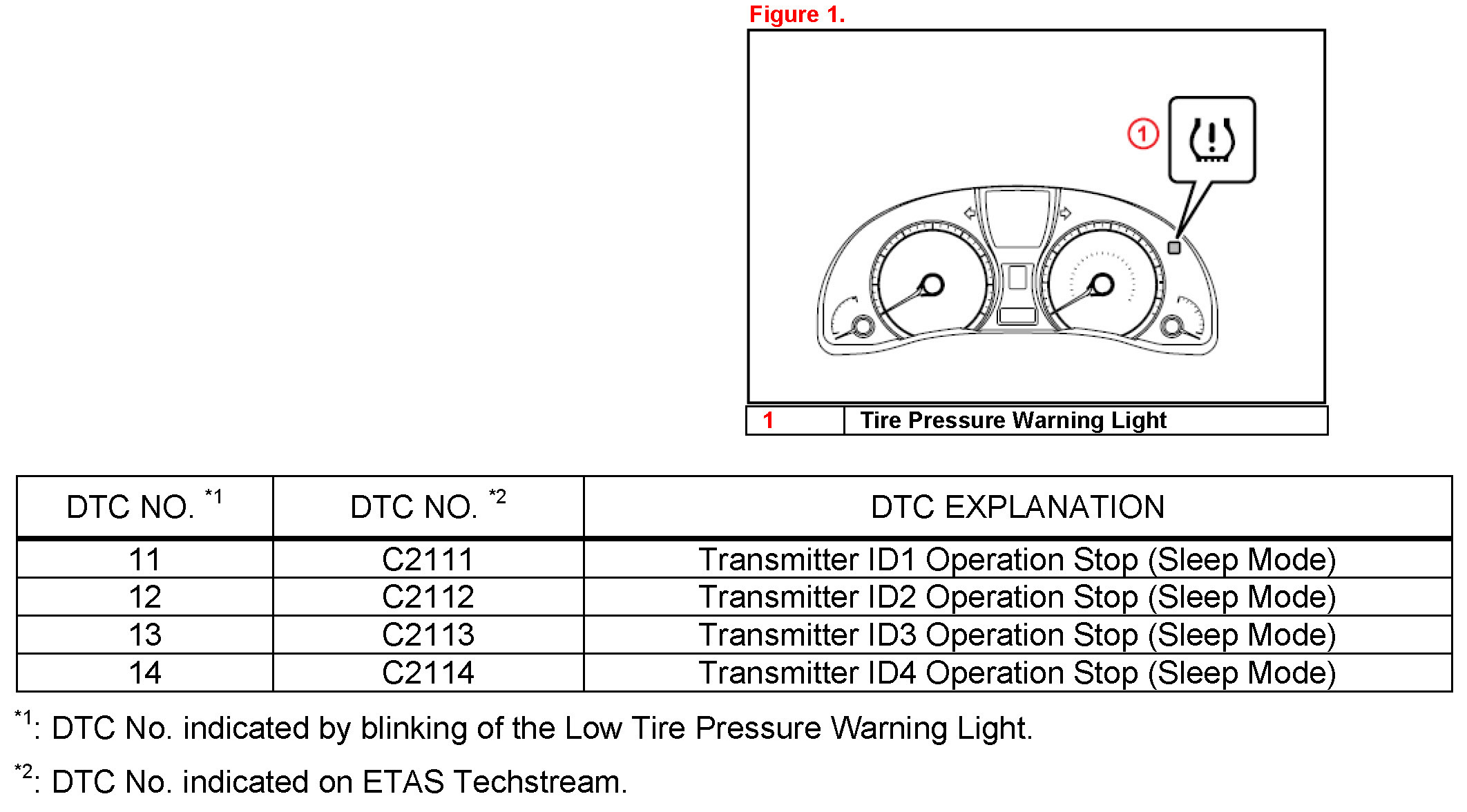 - The DTCs will automatically clear when the tire pressure warning valves/sensors are activated.
