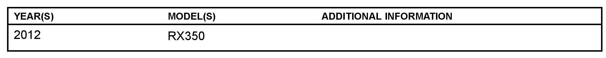 The 2012 model year RX 350 is equipped with a direct-type Tire Pressure Warning System (TPWS). Each tire (except the spare tire) has a tire pressure warning valve/sensor that measures tire pressure data. The data is transmitted to the Tire Pressure Warning System antenna/receiver and then to the Tire Pressure Warning System ECU.