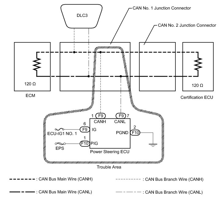 NG -- REPAIR OR REPLACE CAN BUS BRANCH WIRE OR CONNECTOR (POWER STEERING ECU BRANCH WIRE)