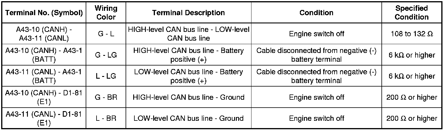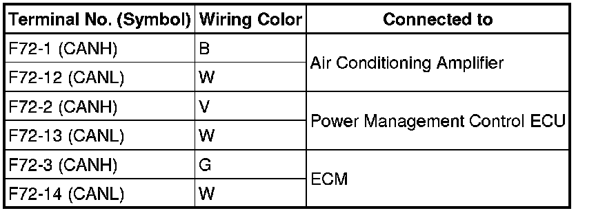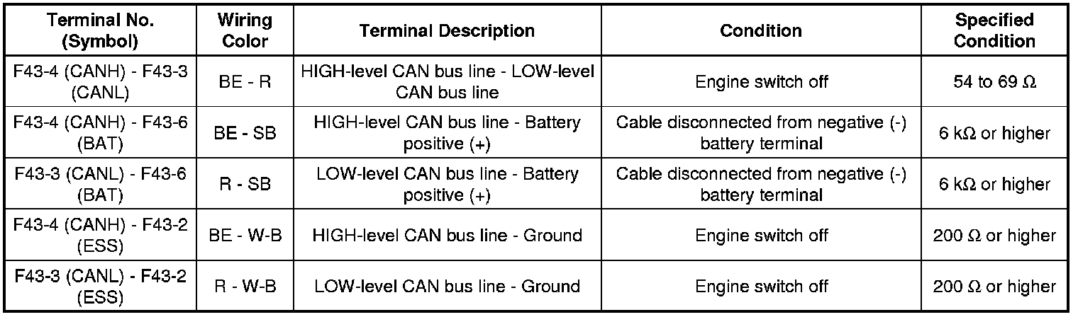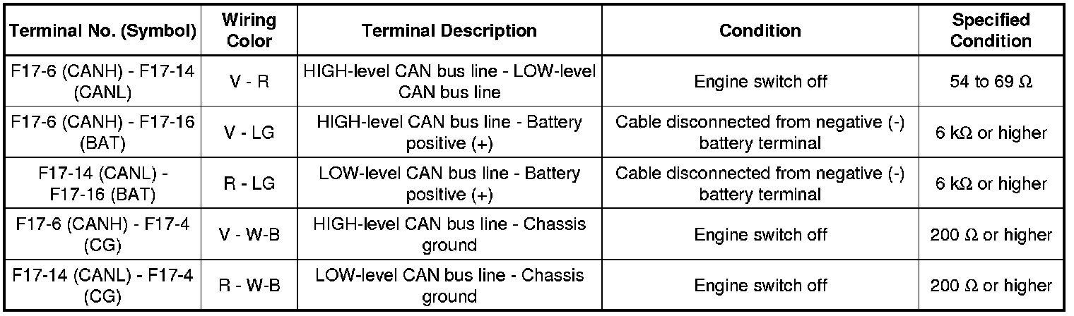 * Turn the engine switch off before measuring the resistances between CAN bus main wires and between CAN bus branch wires.