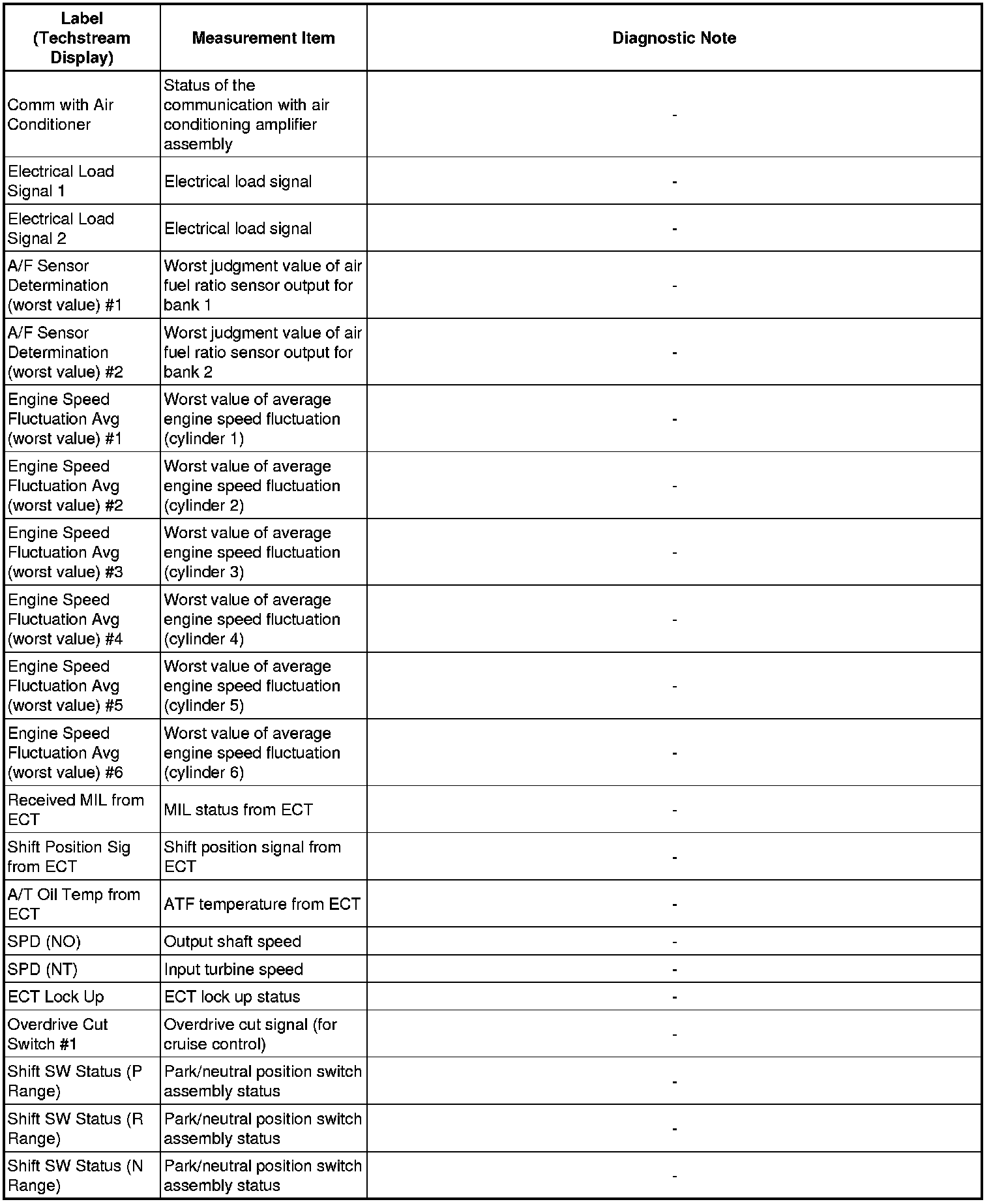 * The ECM records engine conditions in the form of freeze frame data every 0.5 seconds. Using the Techstream, 5 separate sets of freeze frame data, including the data values at the time when the DTC was set, can be checked.