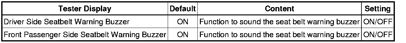 SEAT BELT: SEAT BELT WARNING SYSTEM: CUSTOMIZE PARAMETERS