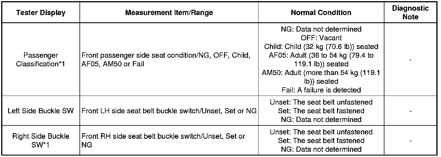 * *1: w/ Occupant Classification System