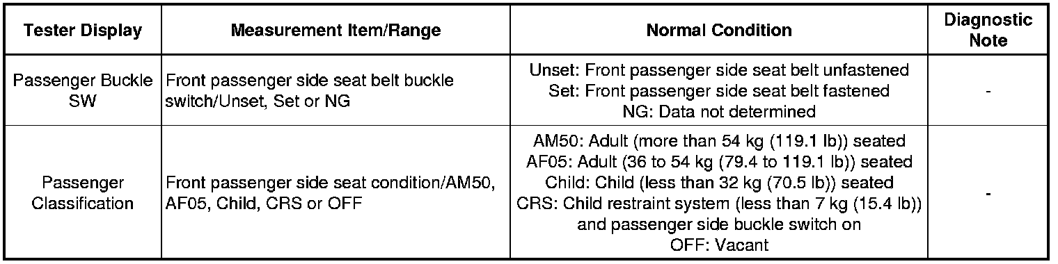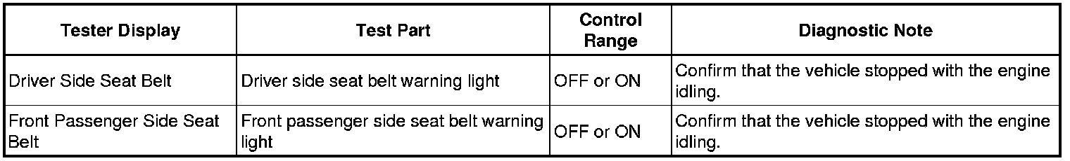 SEAT BELT: SEAT BELT WARNING SYSTEM: DATA LIST / ACTIVE TEST