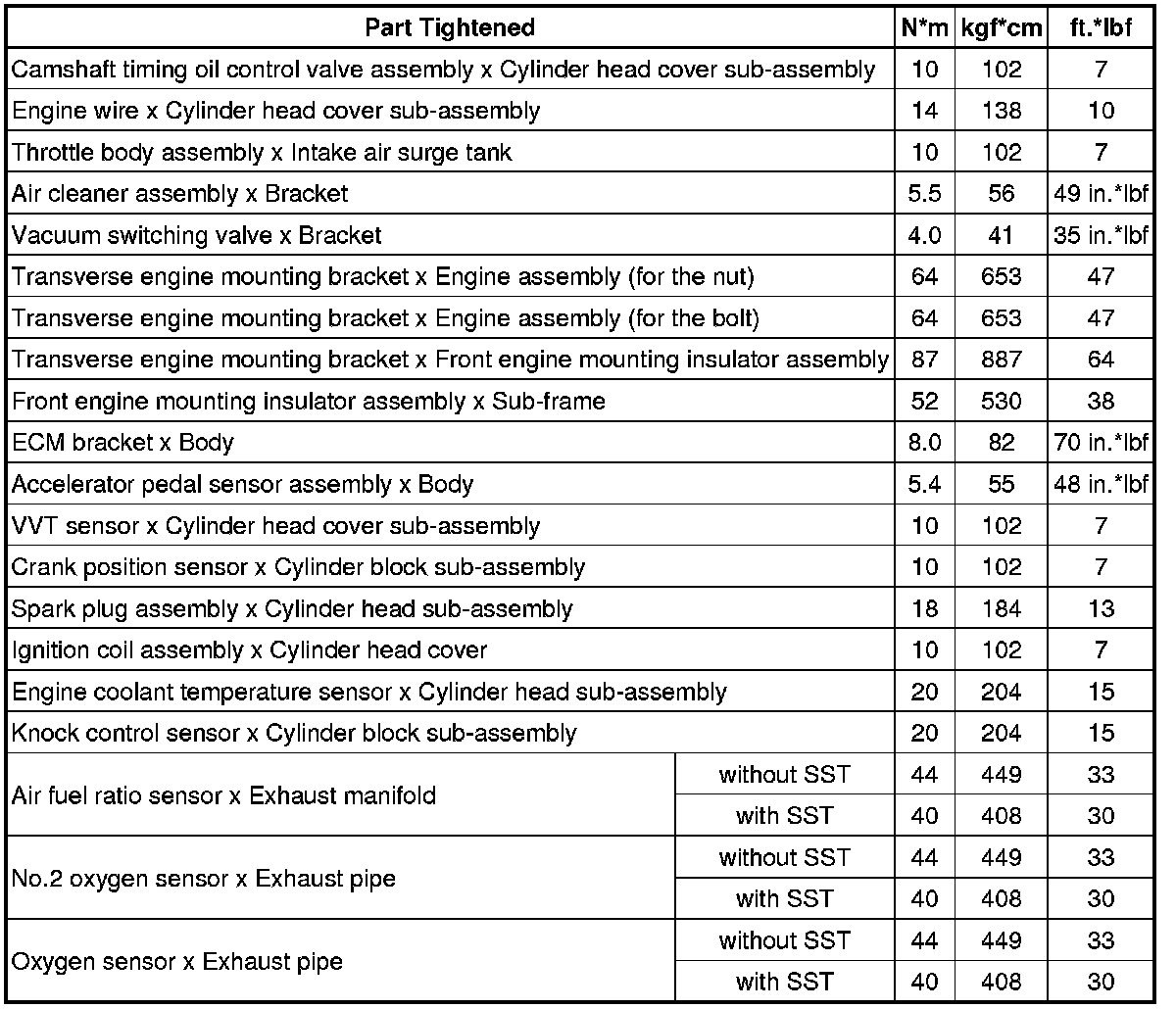 SPECIFICATIONS: 2GR-FE ENGINE CONTROL: TORQUE SPECIFICATIONS
