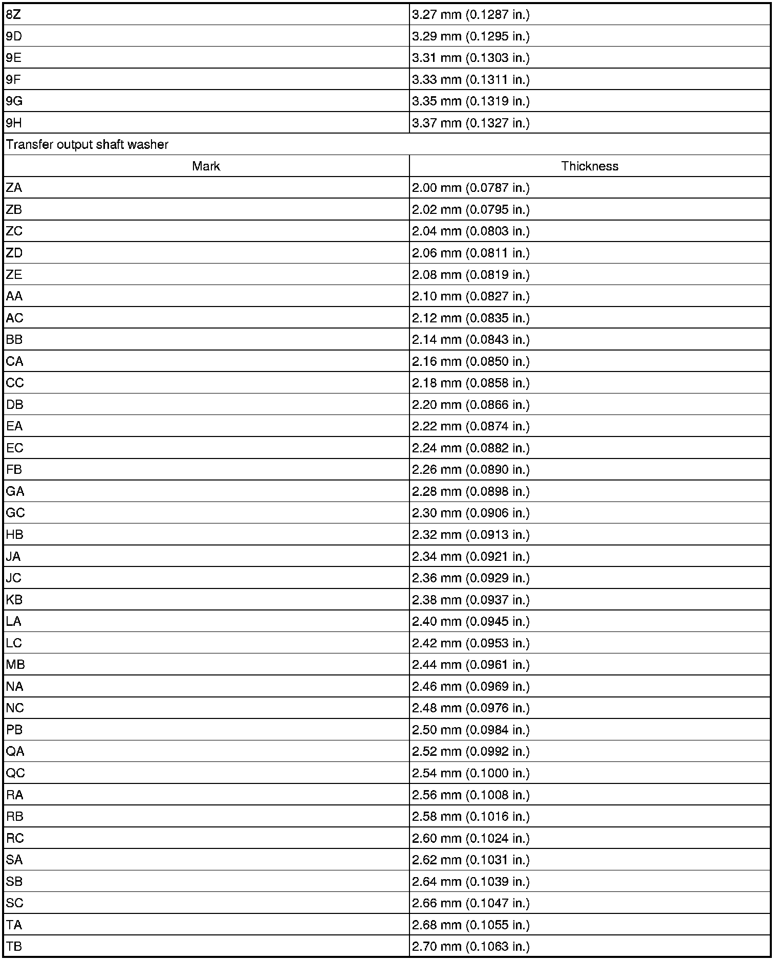 SPECIFICATIONS: MF1A TRANSFER / 4WD / AWD: SERVICE DATA