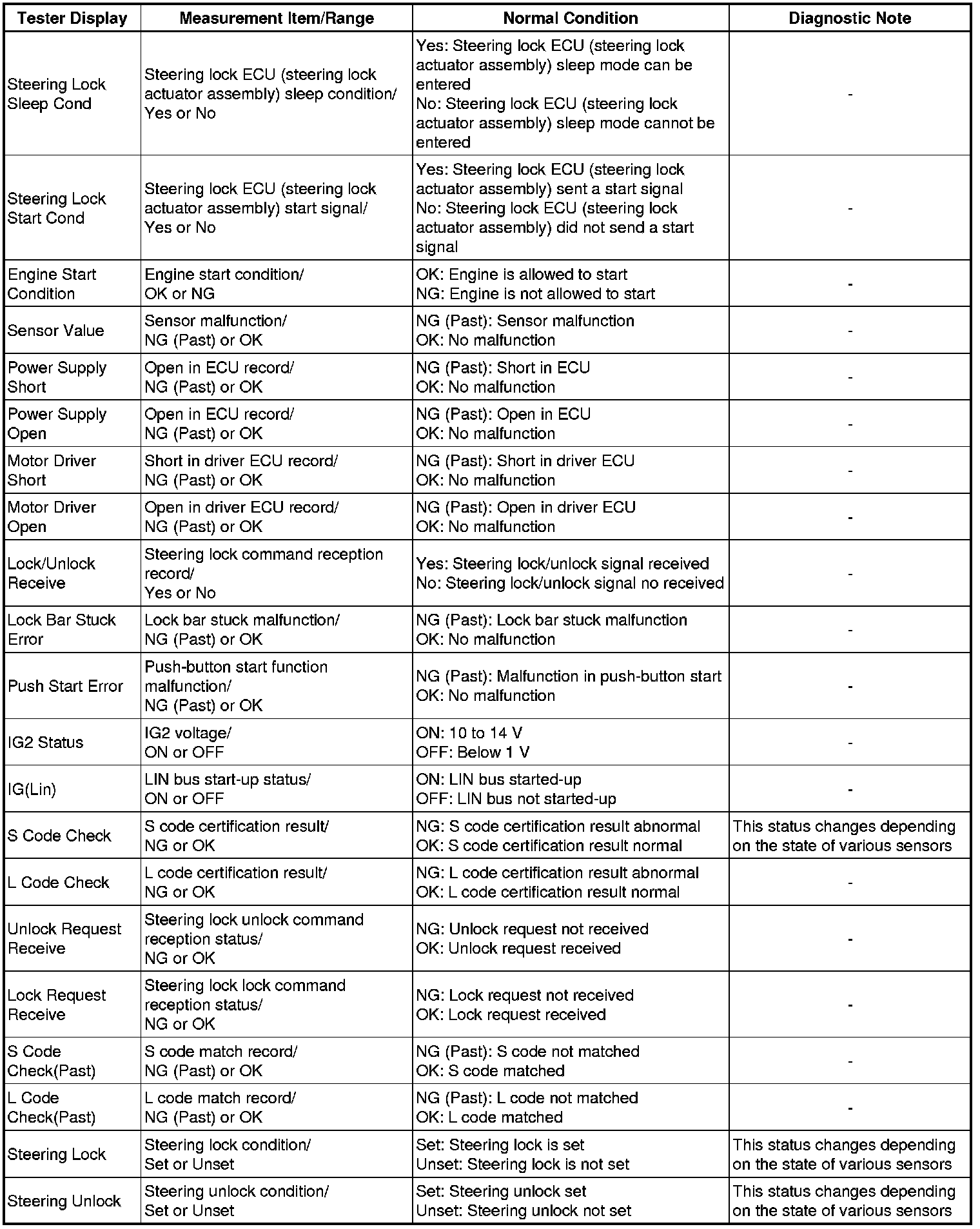 STEERING COLUMN: STEERING LOCK SYSTEM: DATA LIST / ACTIVE TEST