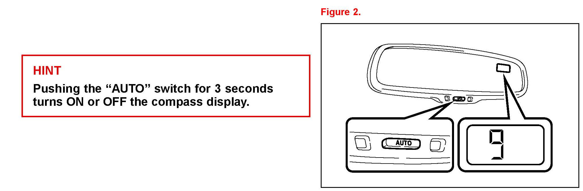 Some 2012 model RX350 vehicles are equipped with a compass in the rear view mirror. In order for the compass to correctly indicate the direction that the vehicle is heading it must be calibrated prior to vehicle delivery. Use the following procedure to perform initial calibration during Pre-Delivery Service (PDS).