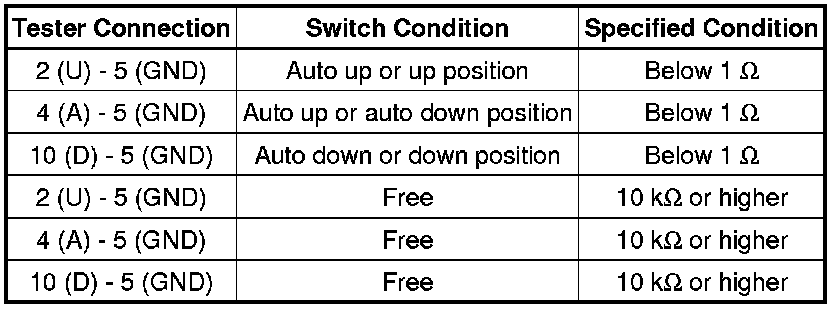 If the result is not as specified, replace the rear power window regulator switch assembly (for rear LH side).