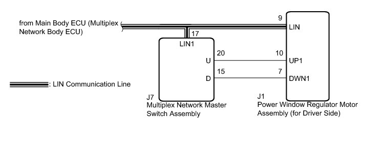 * The power window control system uses a multiplex communication system (LIN communication system). Inspect the communication function by following How to Proceed with Troubleshooting How to Proceed With Troubleshooting. Troubleshoot the power window control system after confirming that the communication system is functioning properly.
