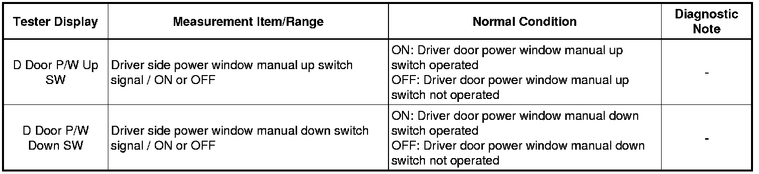 6. CHECK MANUAL UP / DOWN FUNCTION (for Driver Side)
