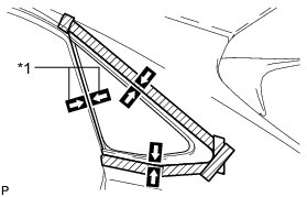 (3) Apply adhesive to the quarter window assembly as shown in the illustration.
