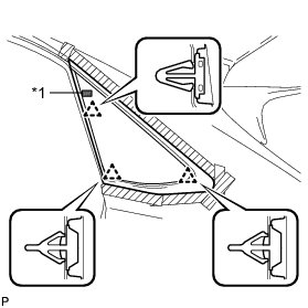 (2) Engage the 3 clips to install the quarter window glass (when glass with all clips is used).