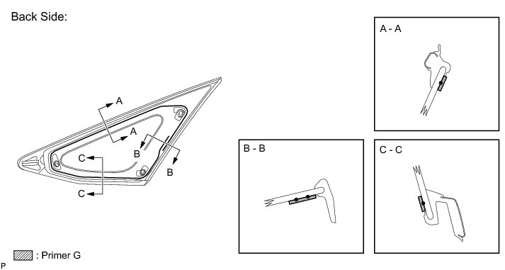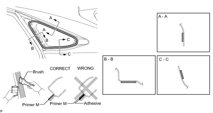 (d) Using a brush or a sponge, apply Primer G to the contact surface of the a new quarter window assembly.