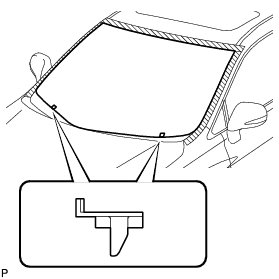 (f) Place matchmarks on the windshield glass and vehicle body on the locations indicated in the illustration.