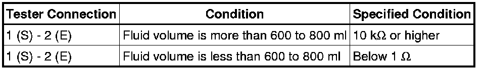 If the result is not as specified, replace the level warning switch assembly.