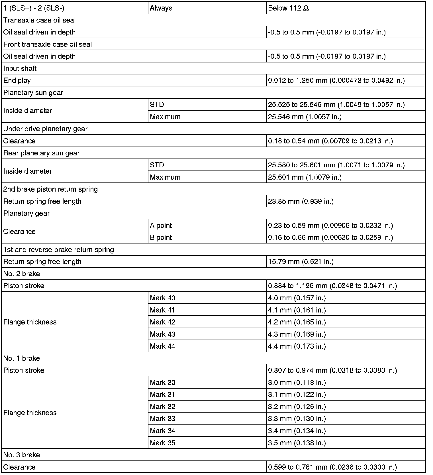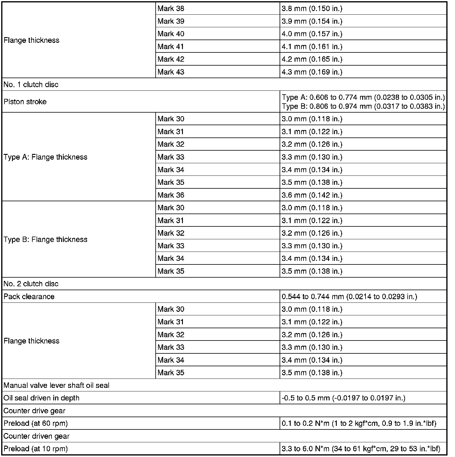 SPECIFICATIONS: U660E AUTOMATIC TRANSMISSION / TRANSAXLE: SERVICE DATA