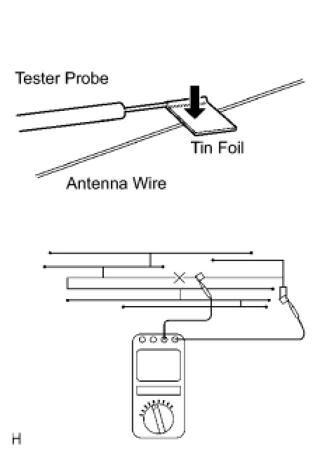 Check for continuity at the center of each antenna wire as shown in the illustration.