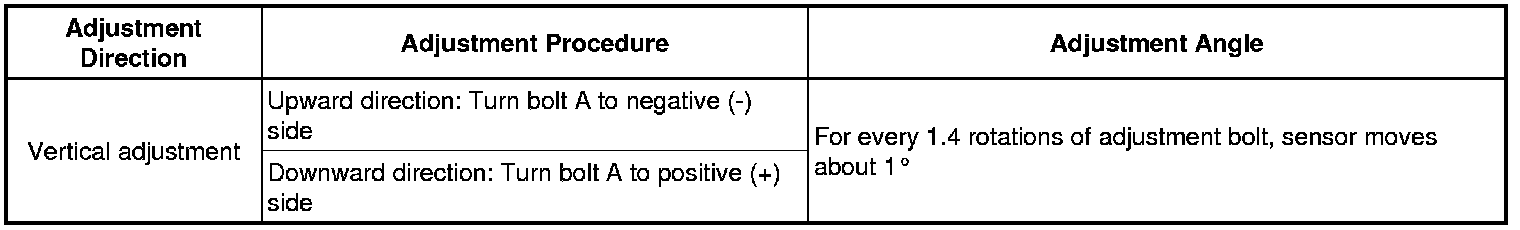 If the axis is not as specified, use a screwdriver to adjust bolt B until the divergence of the radar beam axis is 0°.