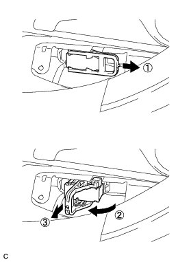 (c) When the auxiliary battery cable is disconnected, the clock and radio settings and stored DTCs are cleared. Therefore, before disconnecting the auxiliary battery cable, make a note of them.