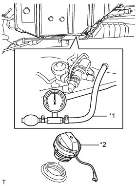 Perform this inspection with the fuel tank less than 90% full. When the fuel tank is full, the valve closes and the pressure is released through the 2 mm orifice. As a result, when the fuel tank cap is removed, the pressure does not decrease smoothly.