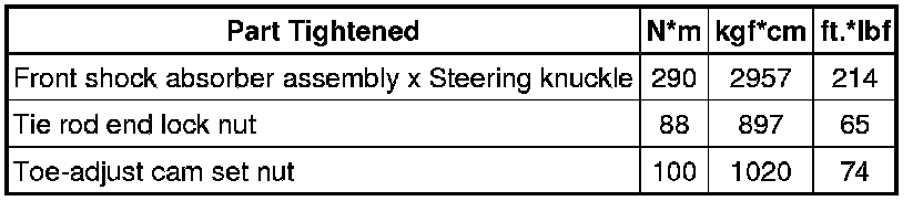 SPECIFICATIONS: ALIGNMENT / HANDLING DIAGNOSIS: TORQUE SPECIFICATIONS