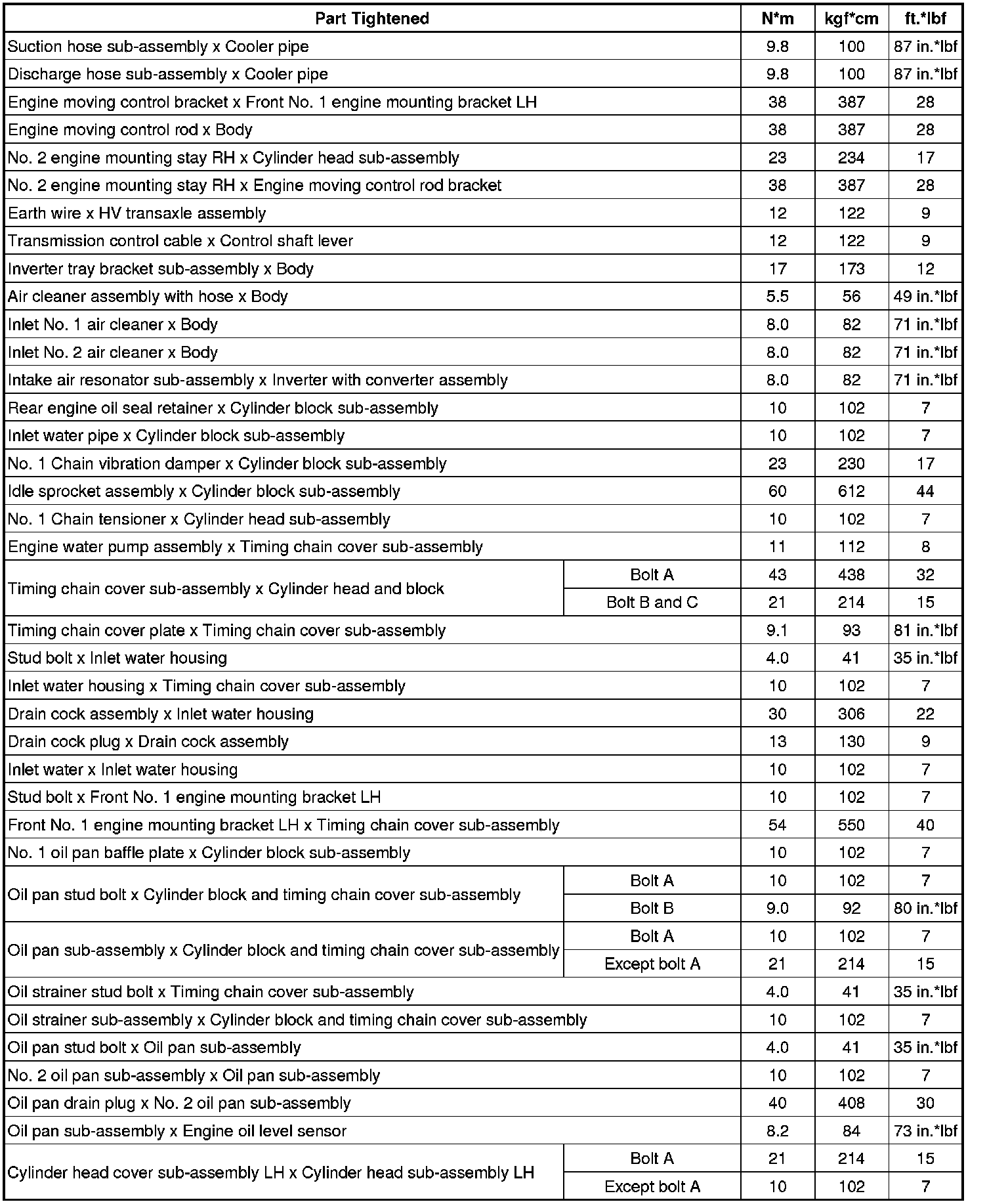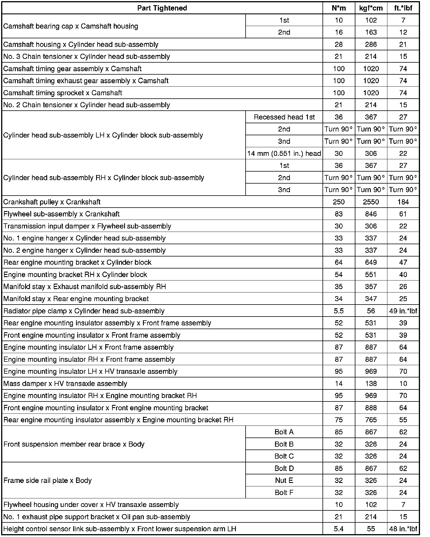 SPECIFICATIONS: 2GR-FXE ENGINE MECHANICAL: TORQUE SPECIFICATIONS