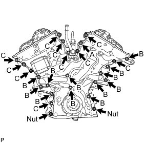 Temporarily tighten the timing chain cover with the 23 bolts and 2 nuts.