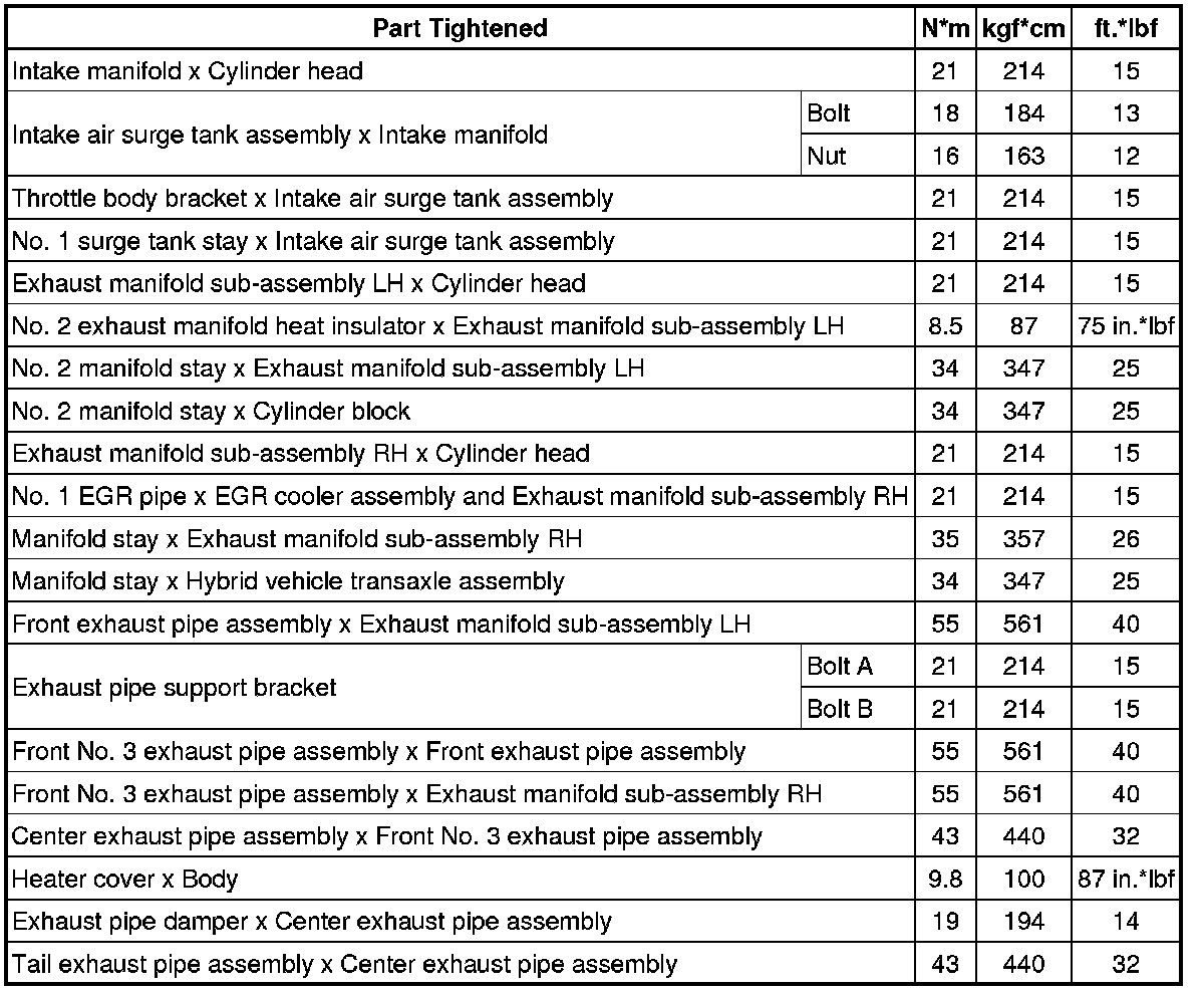 SPECIFICATIONS: 2GR-FXE INTAKE / EXHAUST: TORQUE SPECIFICATIONS