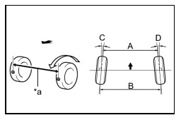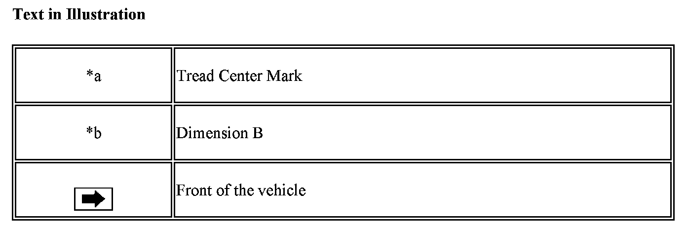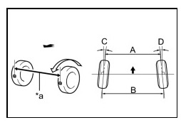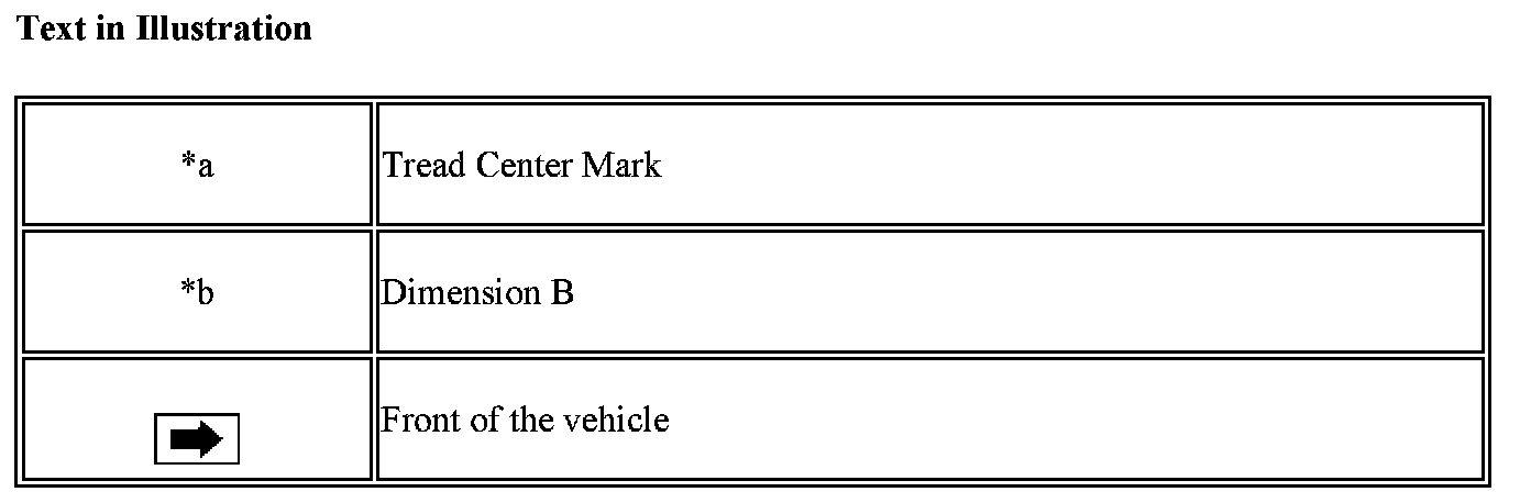 d. Put tread center marks on the rearmost points of the front wheels and measure the distance between the marks (dimension B).