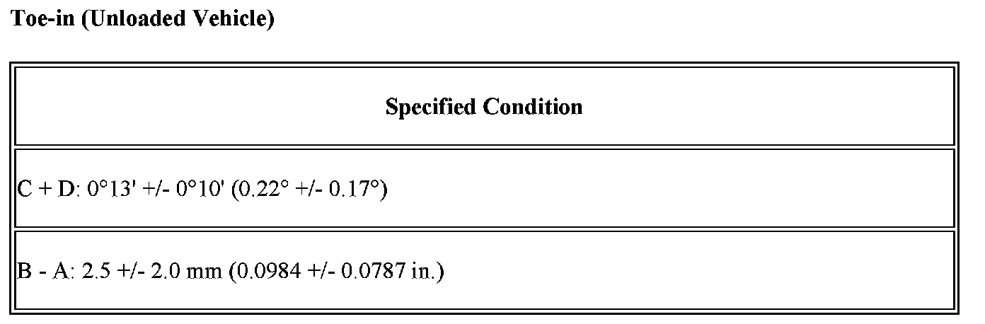 HINT: Camber is not adjustable. If the measurement is not within the specified range, inspect the suspension parts for damage and/or wear, and replace them if necessary.
