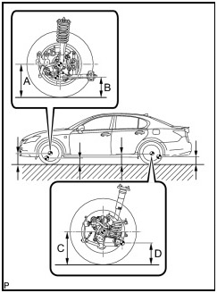 - Before inspecting the wheel alignment, adjust the vehicle height to the specified value.