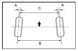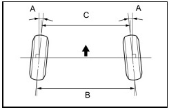 1. Bounce the vehicle at the corners up and down to stabilize the suspension and inspect toe-in.