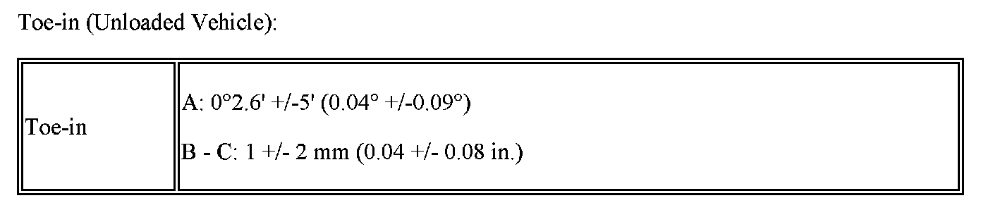 If the toe-in is not within the specified range, inspect the suspension parts and replace if necessary.