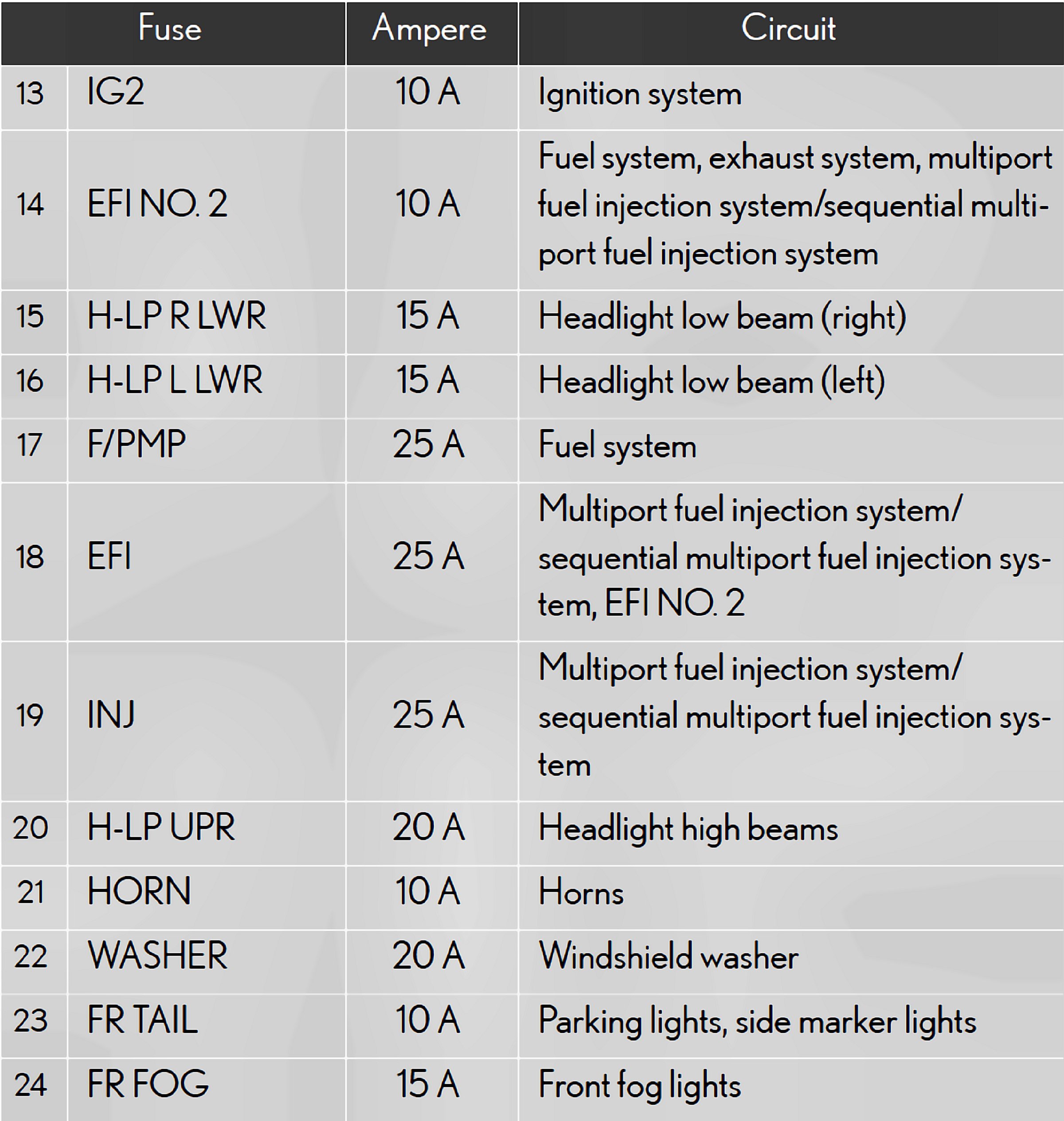 Fuses 13-24: