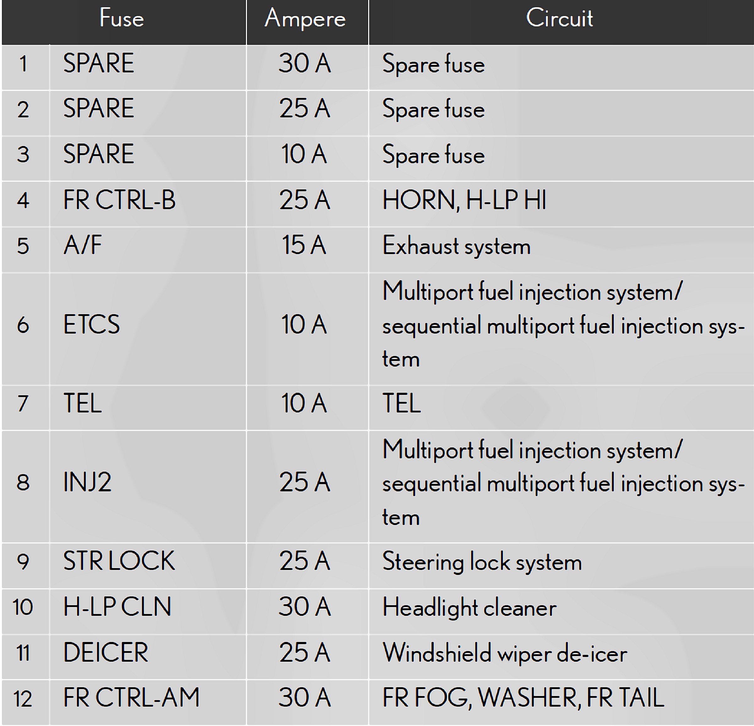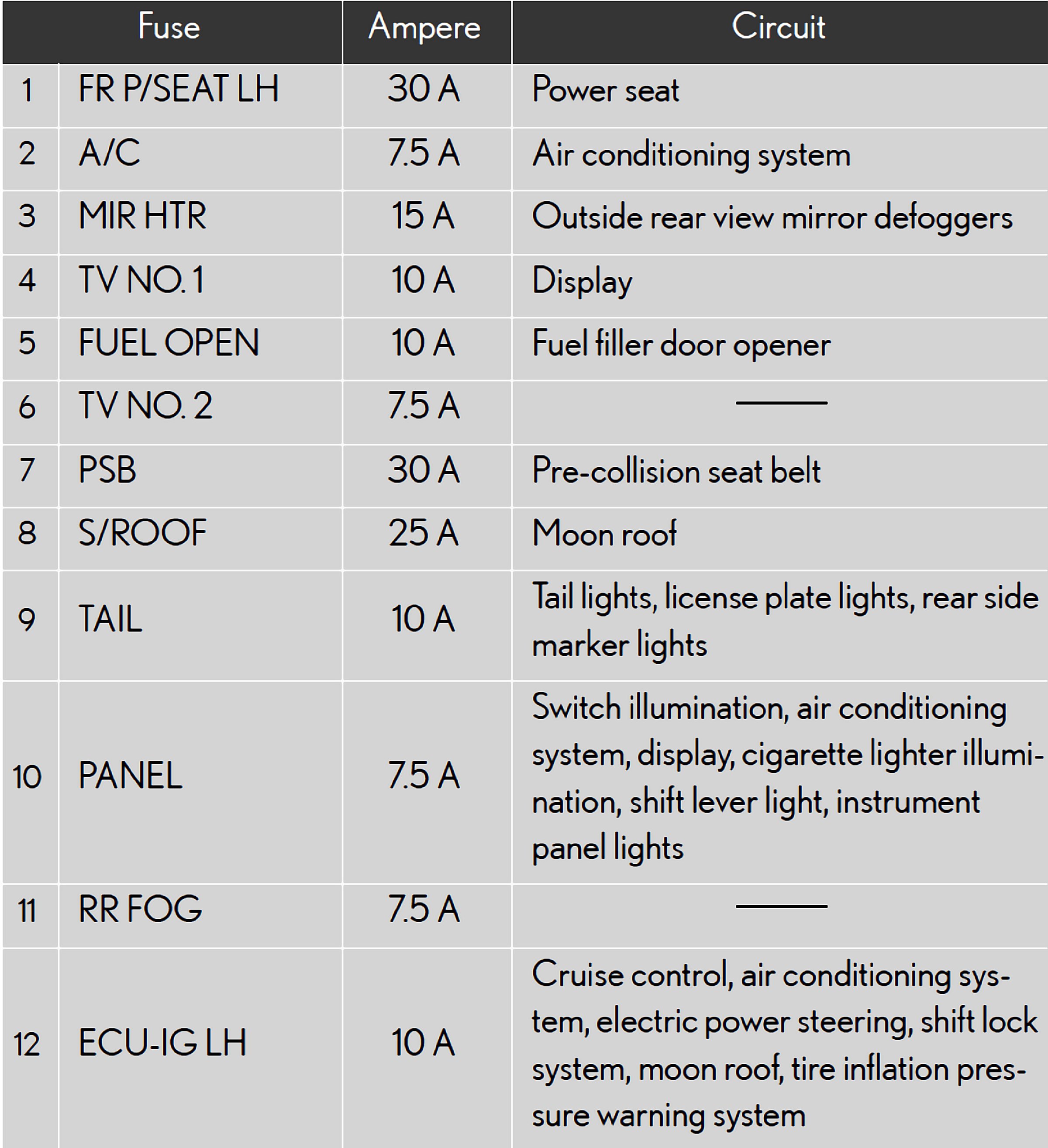 Fuses 1-12: