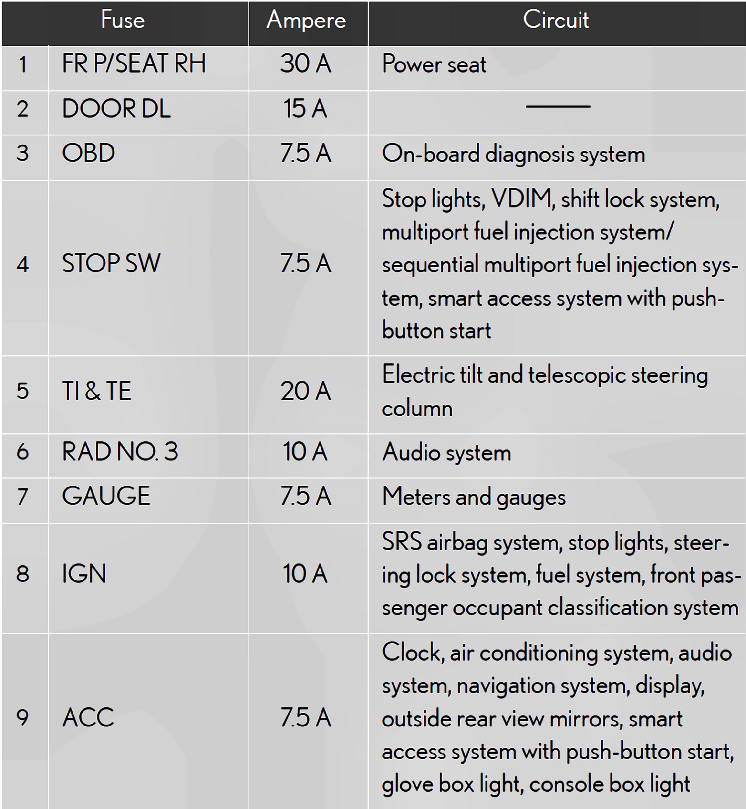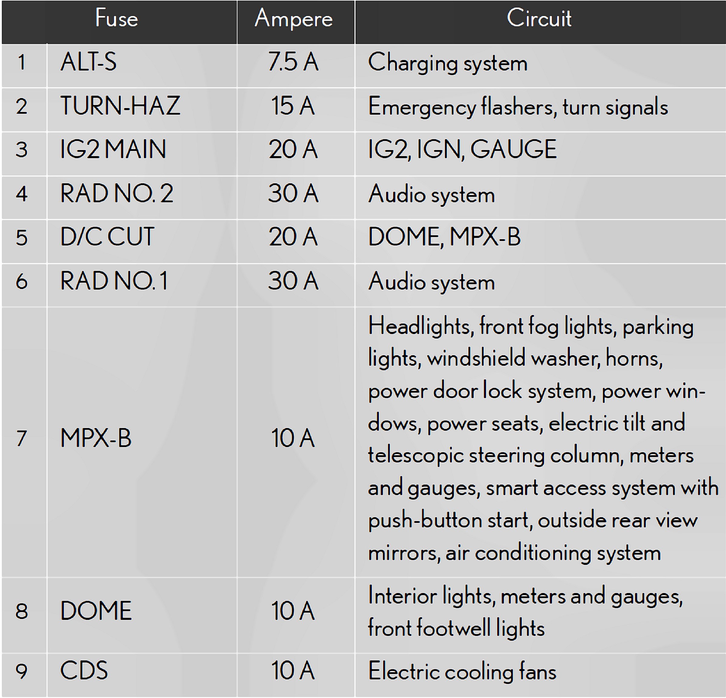 Fuses 1-9: