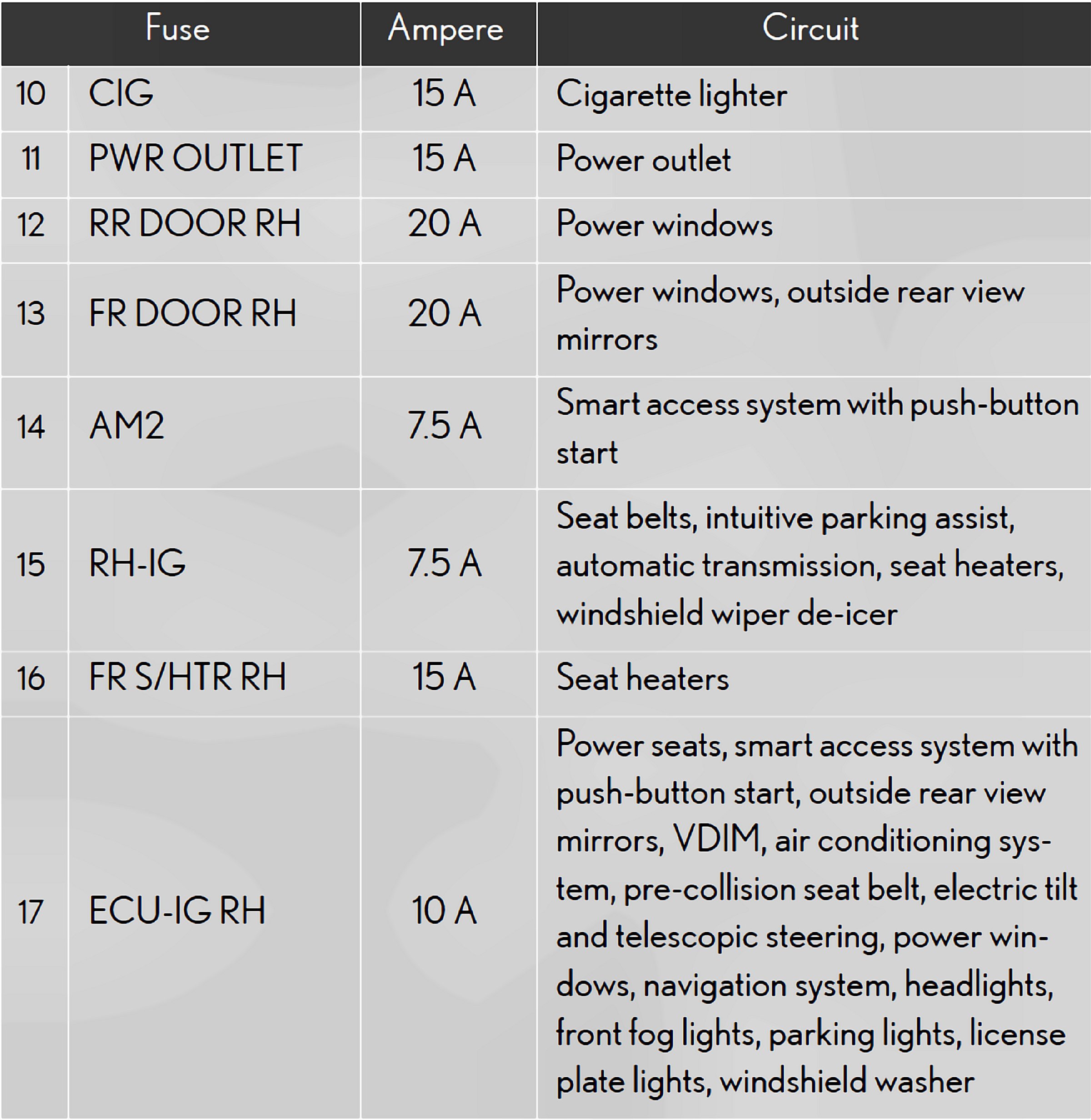Fuses 10-17: