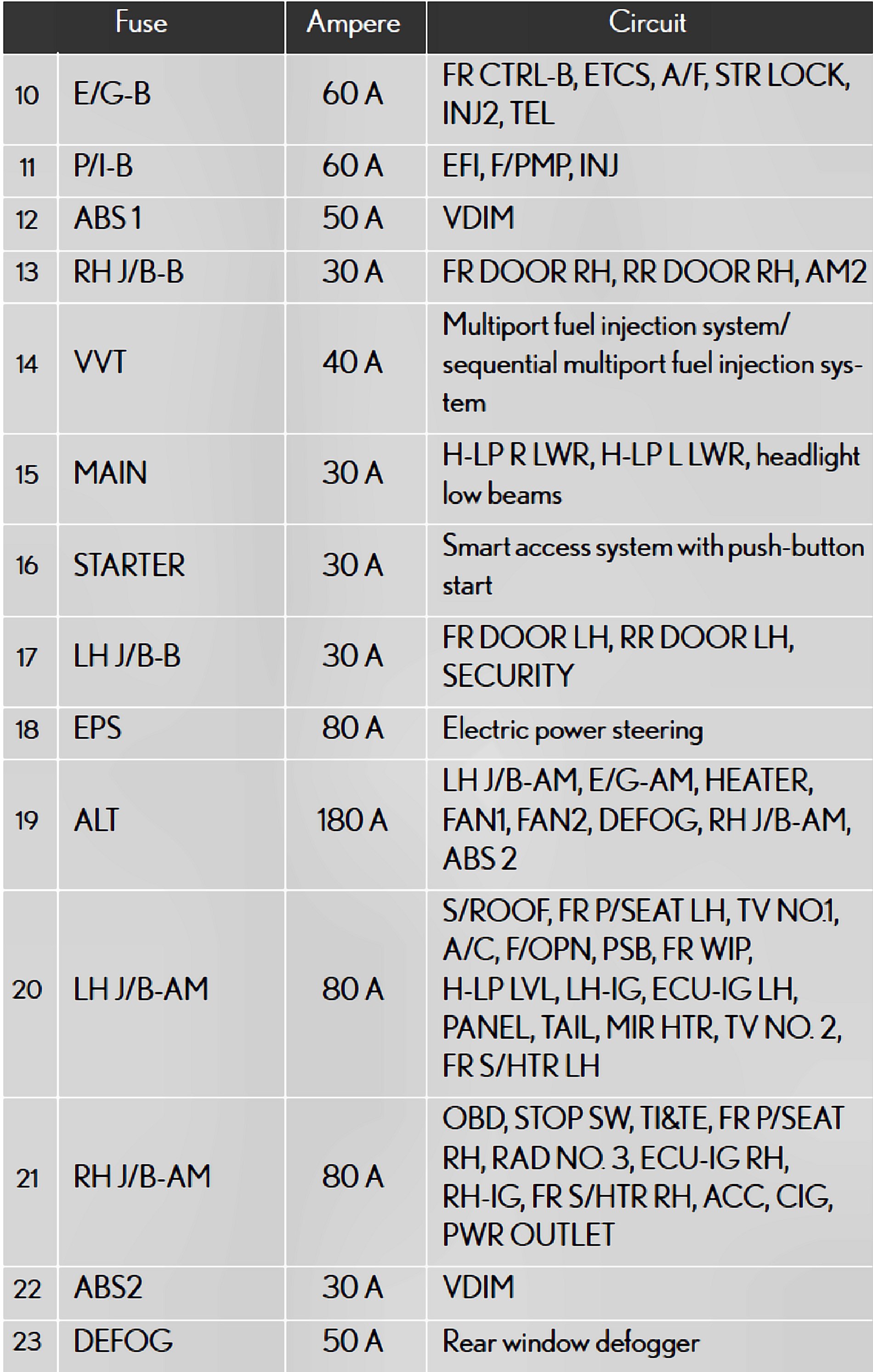 Fuses 10-23: