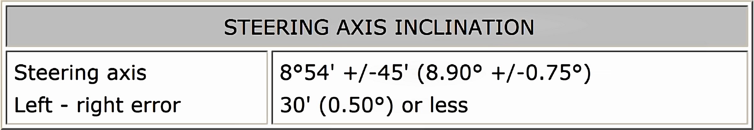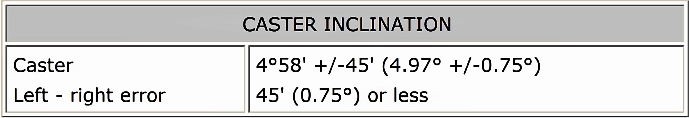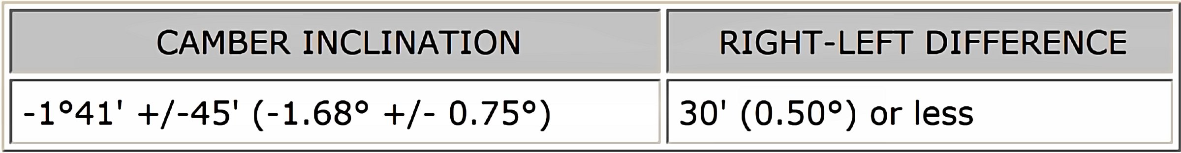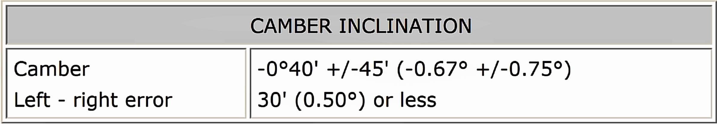 Standard Rear Camber Inclination: