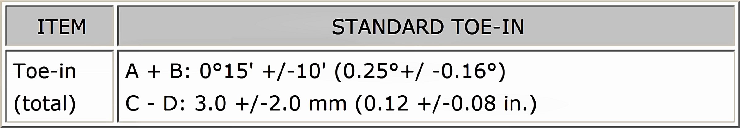 Standard Rear Toe-in: